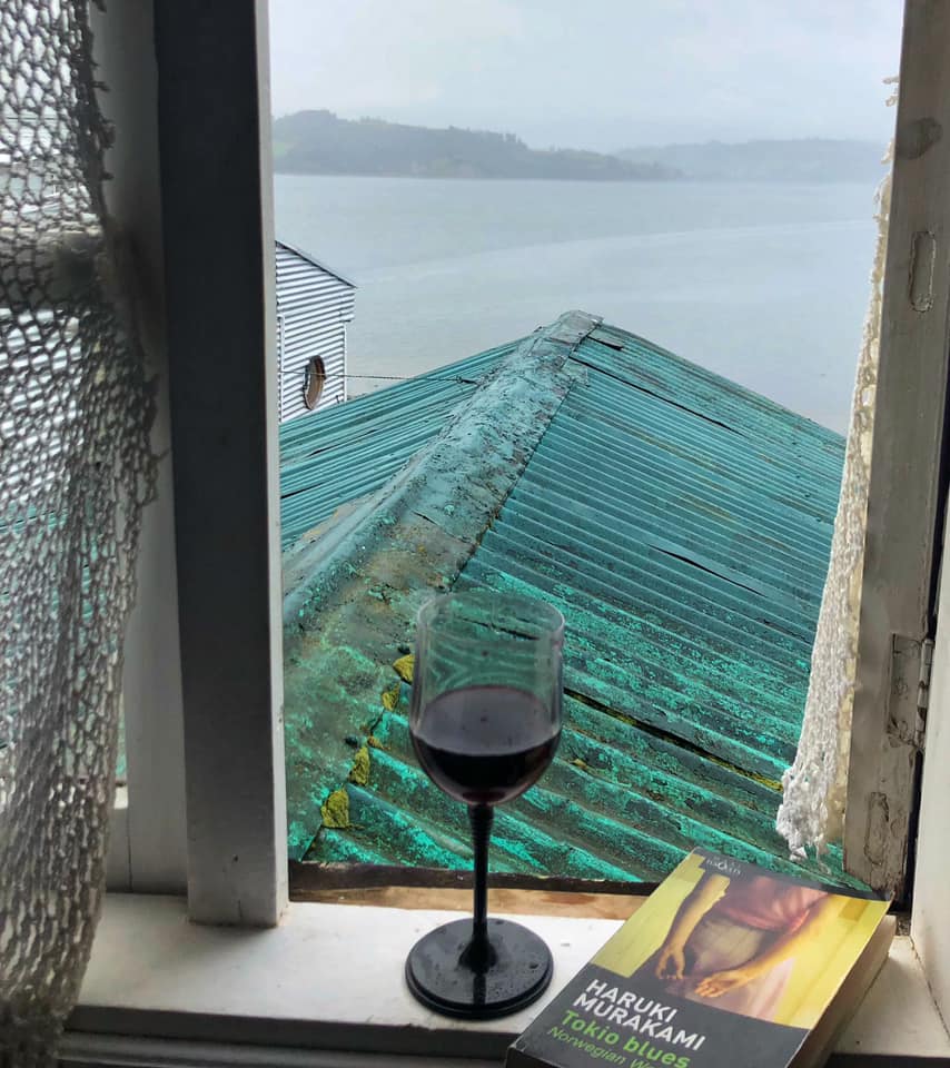所住的民宿Palafitos Emilio y Ester 是超過百年以上的木造高腳屋房子,主人Henry把祖父母留下來的房子打理得很好,他撿拾許多漂流木結合此地風行的編織,手做許多家具裝飾這個房子。房子面向大海,有一個很大的露臺,可以從露臺推著獨木舟下海、優游海灣。有意思的是,來這裡住的旅人多半是獨行的旅行者,我遇見一個德國人、一個智利人、一個波多黎各人,由於陰雨綿綿,我們多半窩在壁爐前各做各的事。每到傍晚我會調Piscola、煮自己的晚餐,Henry則聽著佛經(是的,西文的佛經講道),窗外的海浪聲一陣一陣的襲來。